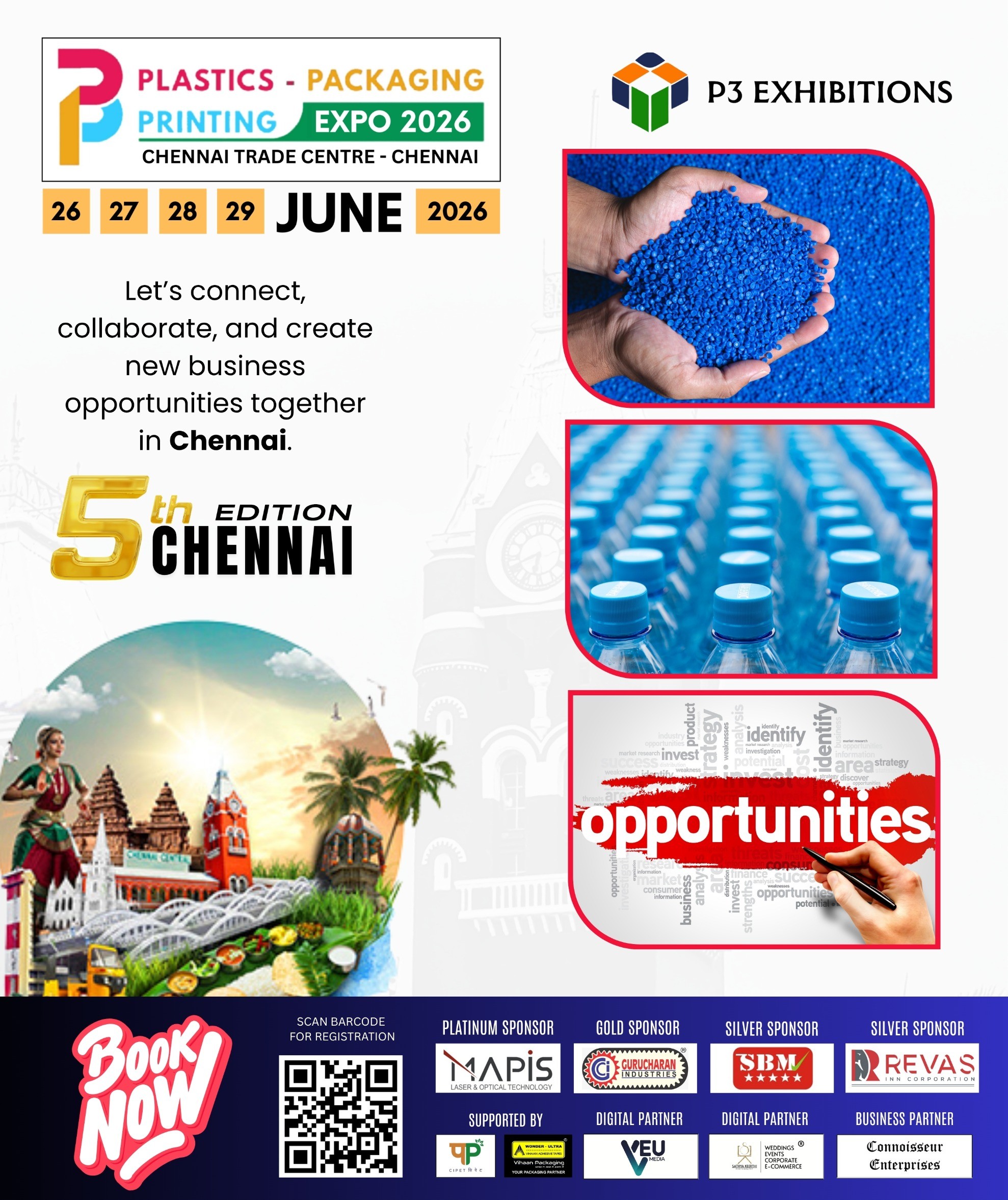 | 26-29 June 2026 | CHENNAI TRADE CENTRE, CHENNAI, TAMILNADU | Plastics, Packaging, Printing Expo 2026 | P3 Exhibitions |